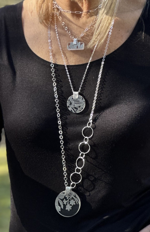Lynda has an adorable studio with the most amazing hand made jewelry. If you have sentimental pieces of silver like trays or teapots, Lynda can turn them into jewelry.