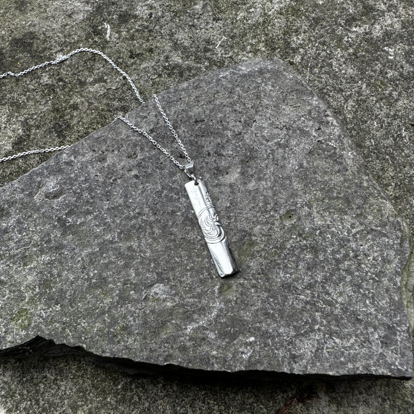 • Load image into Gallery viewer, Dainty bar necklace sterling chain vintage antique recycled restyled Canadian handmade wearable art